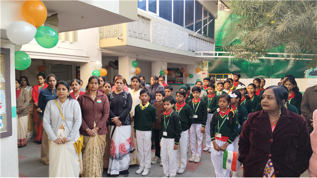 The school celebrated Republic Day with great enthusiasm, bringing together teachers, students, the Principal, and the Academic Director to honor our nation. The event began with the National Flag hoisting, followed by the National Anthem, igniting a sense of patriotism.